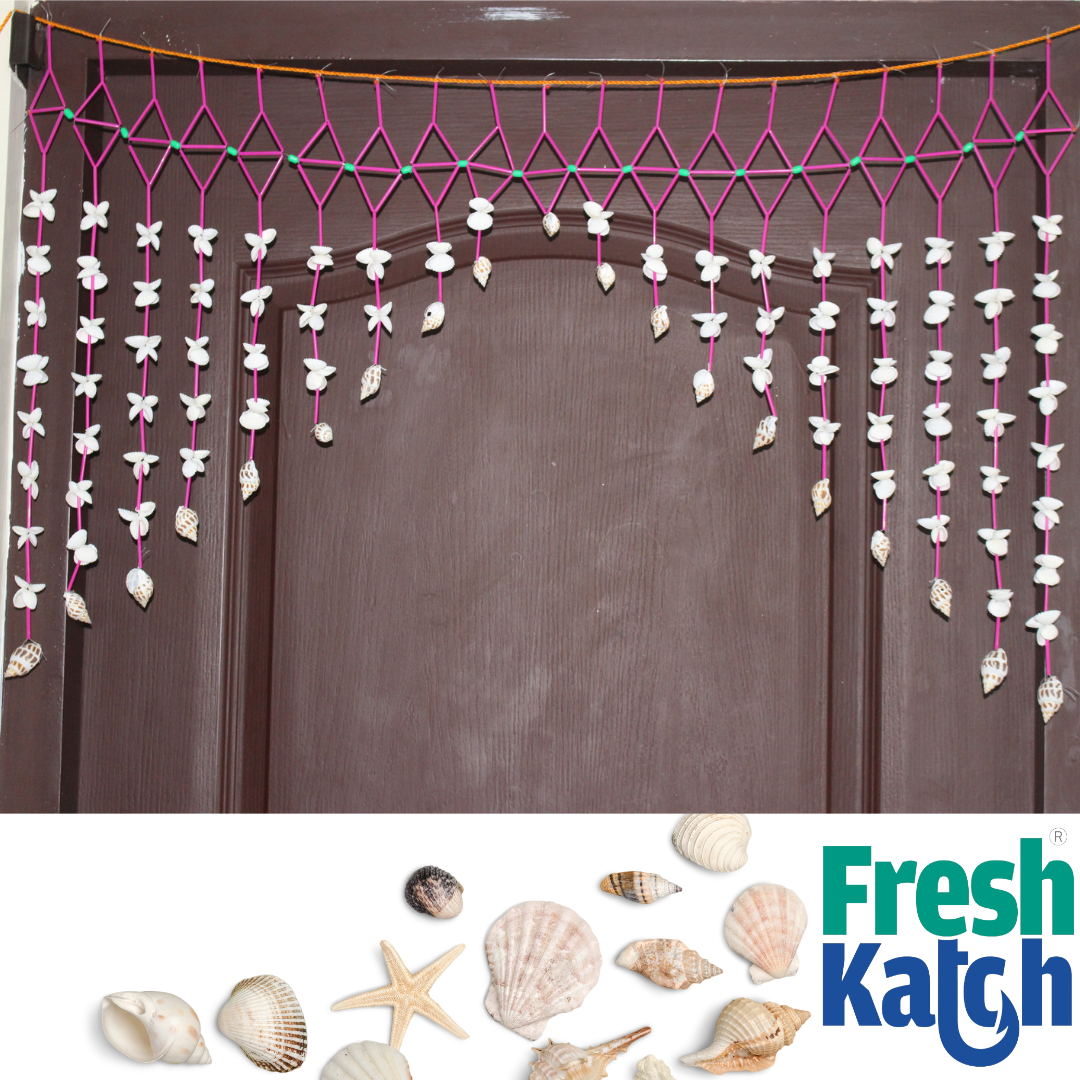 FreshKatch Seashell Curtains with Pink Sleeves - (Half)